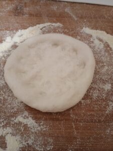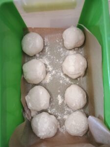 - Teig nun zu ca. 30g schweren Teigkugeln formen. Dabei mit Maismehl benetzen.