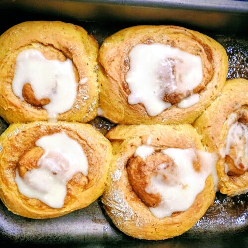 Diese Zimtschnecken mit Kürbis schmecken, als hätten sich Lorelai und Rory nach einem Streit endlich wieder versöhnt, eingehüllt in eine warme Umarmung und die gemütliche Verheißung einer neuen Jahreszeit.