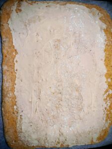- Die Zutaten für den Guss gut vermengen, sodass eine homogene dickflüssige Masse entsteht.