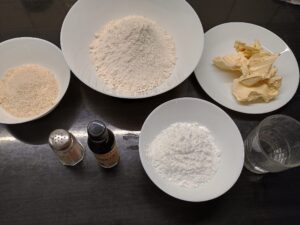 - Die Mehle mit dem Puderzucker und Salz vermengen.